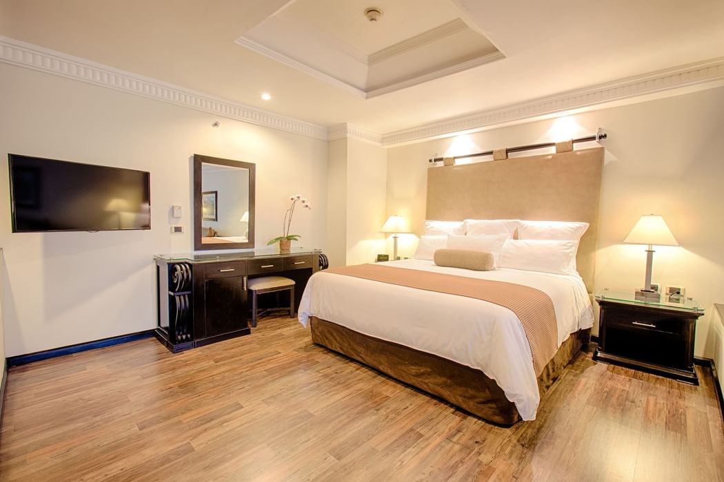 La cama era muy cómoda y la habitación tenía todo lo necesario además de ser muy espaciosa, el buffet del desayuno estaba muy completo y la comida muy rica, la piscina y el gimnasio estuvieron excelentes igual que el servicio de los trabajadores